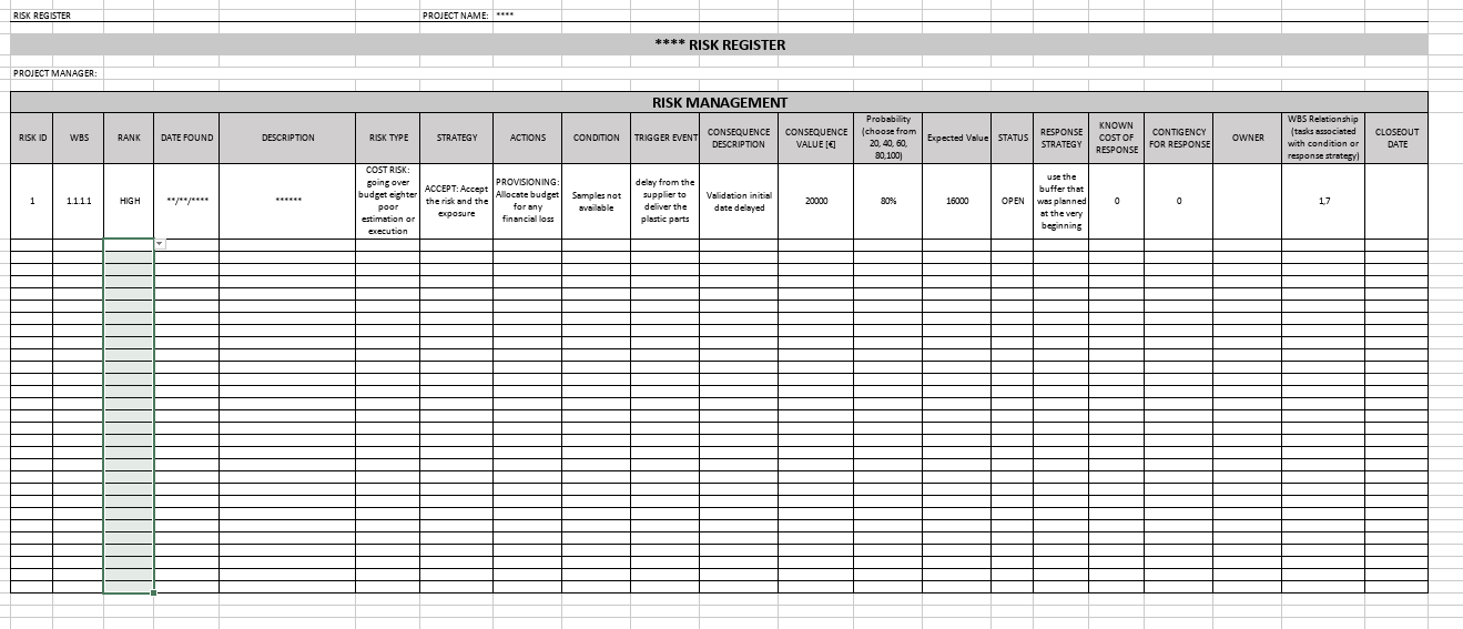 Anche se il registro dei rischi viene utilizzato soprattutto durante l'esecuzione del progetto, dovrebbe essere creato durante la fase di pianificazione del progetto.