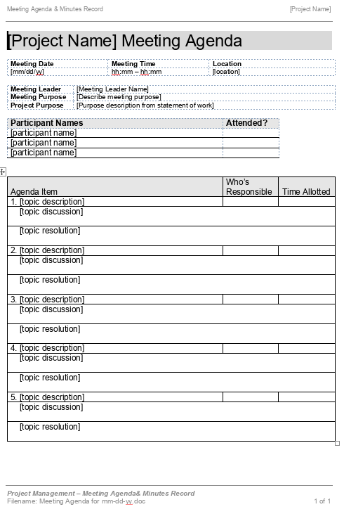 L'ordine del giorno di una riunione di project management è uno schema strutturato utilizzato per guidare le discussioni durante le riunioni di progetto. Elenca gli argomenti, gli obiettivi e le decisioni chiave da affrontare, assicurando che la riunione rimanga concentrata e produttiva.