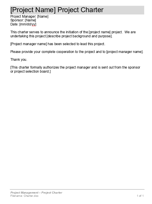 Il project charter è la dichiarazione dell'ambito, degli obiettivi e delle persone che partecipano a un progetto. Inizia il processo di definizione dei ruoli e delle responsabilità dei partecipanti e delinea gli obiettivi e le finalità del progetto. Identifica anche i principali stakeholder e definisce l'autorità del project manager all'inizio del piano di progetto