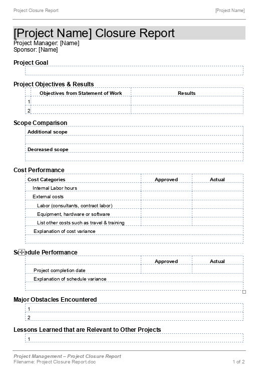 Un rapporto di chiusura del progetto è un documento formale che riassume i risultati di un progetto dopo il suo completamento. È un resoconto delle prestazioni del progetto, cattura le lezioni apprese e fornisce una valutazione finale del raggiungimento degli obiettivi del progetto.