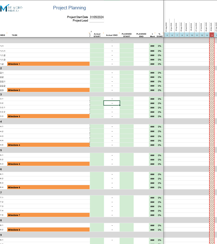 Template PRO ti offre un controllo completo sulla gestione dei tuoi progetti, permettendoti di individuare tempestivamente ritardi e criticità. Un unico strumento, intuitivo e professionale, per ottimizzare il tuo lavoro con semplicità ed efficienza.