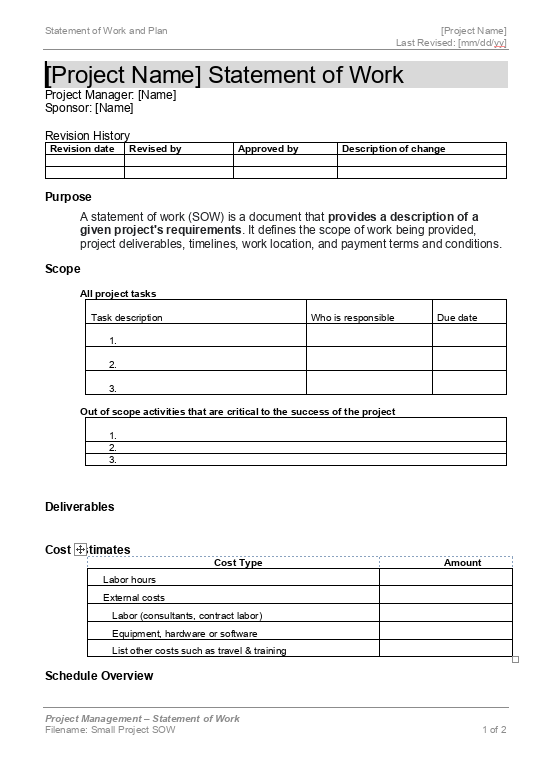 l SOW è un documento in cui vengono sinteticamente descritti gli obiettivi ed il lavoro da svolgere in un progetto.