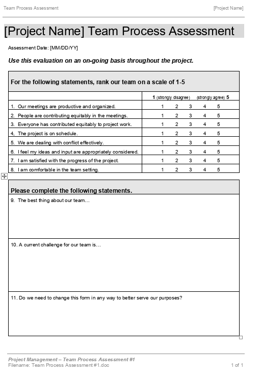 Team process assessment 1 + Team process assessment 2 (.doc; per progetti semplici e complessi)